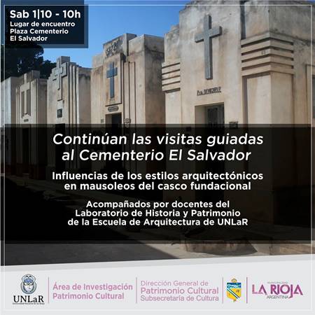 Este sábado 1 de octubre, a las 10 horas, continúan las visitas guiadas al cementerio El Salvador de la ciudad de La Rioja por parte del Área de Investigación de la Dirección General de Patrimonio Cultural municipal..