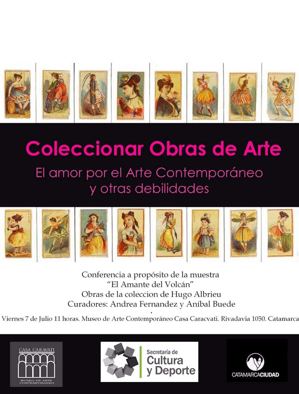 El jueves 6 de julio a las 20 horas quedará inaugurada la muestra El amante del volcán compuesta por obras de la Colección Albrieu con curaduría de Andrea Fernández y Aníbal Buede. Será en el Museo Casa Caravati, Peatonal Rivadavia 1.050, en Catamarca. El viernes a las 11 será la conferencia Coleccionar Obras de Arte. El amor por el Arte Contemporáneo y otras debilidades..