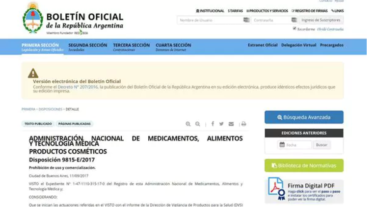 En la Disposición 9819-E/2017 se estableció la prohibición de tres productos "a fin de proteger a eventuales usuarios", tras constatar que son "ilegítimos (se desconocen sus elaboradores y si fueron formulados con ingredientes y bajo concentraciones permitidas de acuerdo a los lineamientos de la normativa vigente al respecto)".