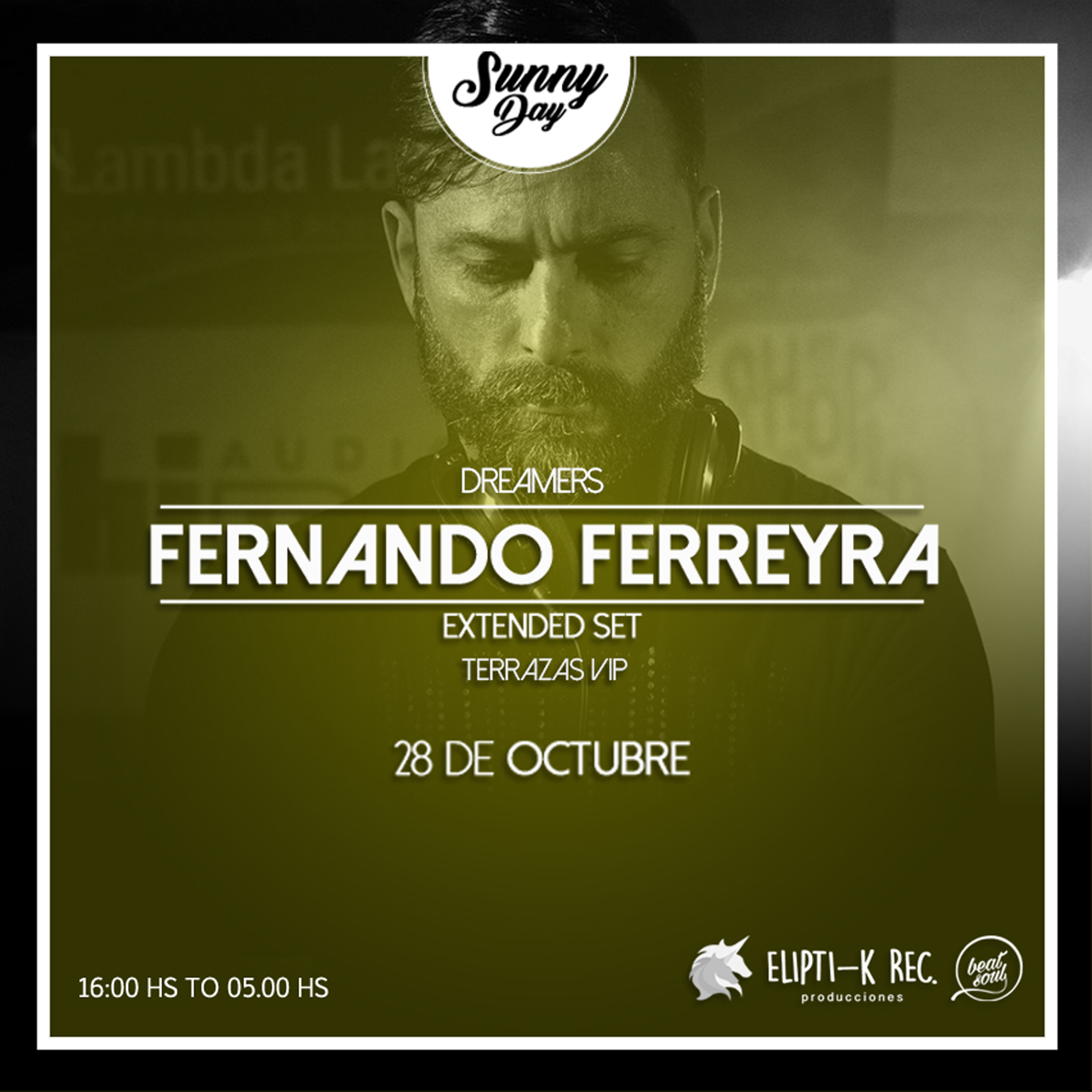 La fiesta se llama "Sunny Day" y será la primera de muchas. El primer gran invitado es uno de los referentes del Progressive argentino y latinoamericano Fernando Ferreyra. Llega después de tocar en Budapest, Hungría, en el corazón de Europa del Este.