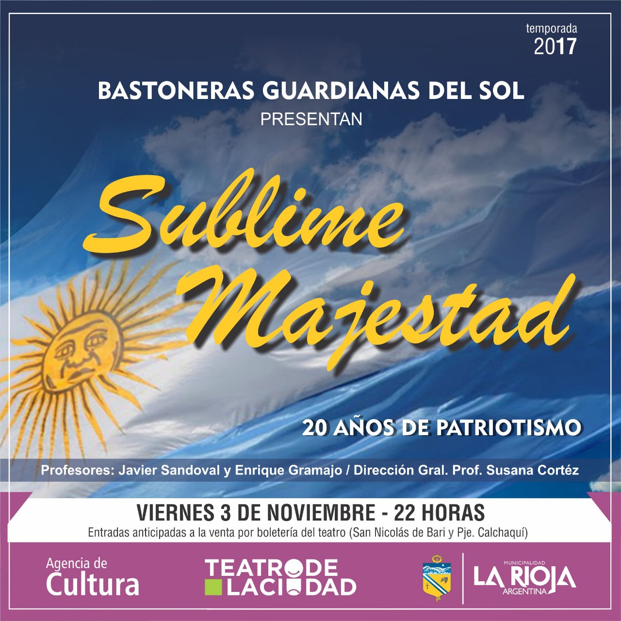 El Cuerpo de Bastoneras Guardianas Del Sol, desplegarán el show Sublime Majestad, el próximo viernes 3 de noviembre desde las 22 horas en el Teatro de la Ciudad..