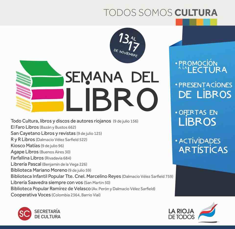 La Secretaría de Cultura, junto a librerías y bibliotecas del ámbito local acordaron realizar la Semana del Libro. Habrá propuestas destinadas a la promoción de la lectura, presentación de libros, ofertas en textos, obsequios y actividades artísticas. Cada espacio tendrá actividades especiales en distintos horarios.