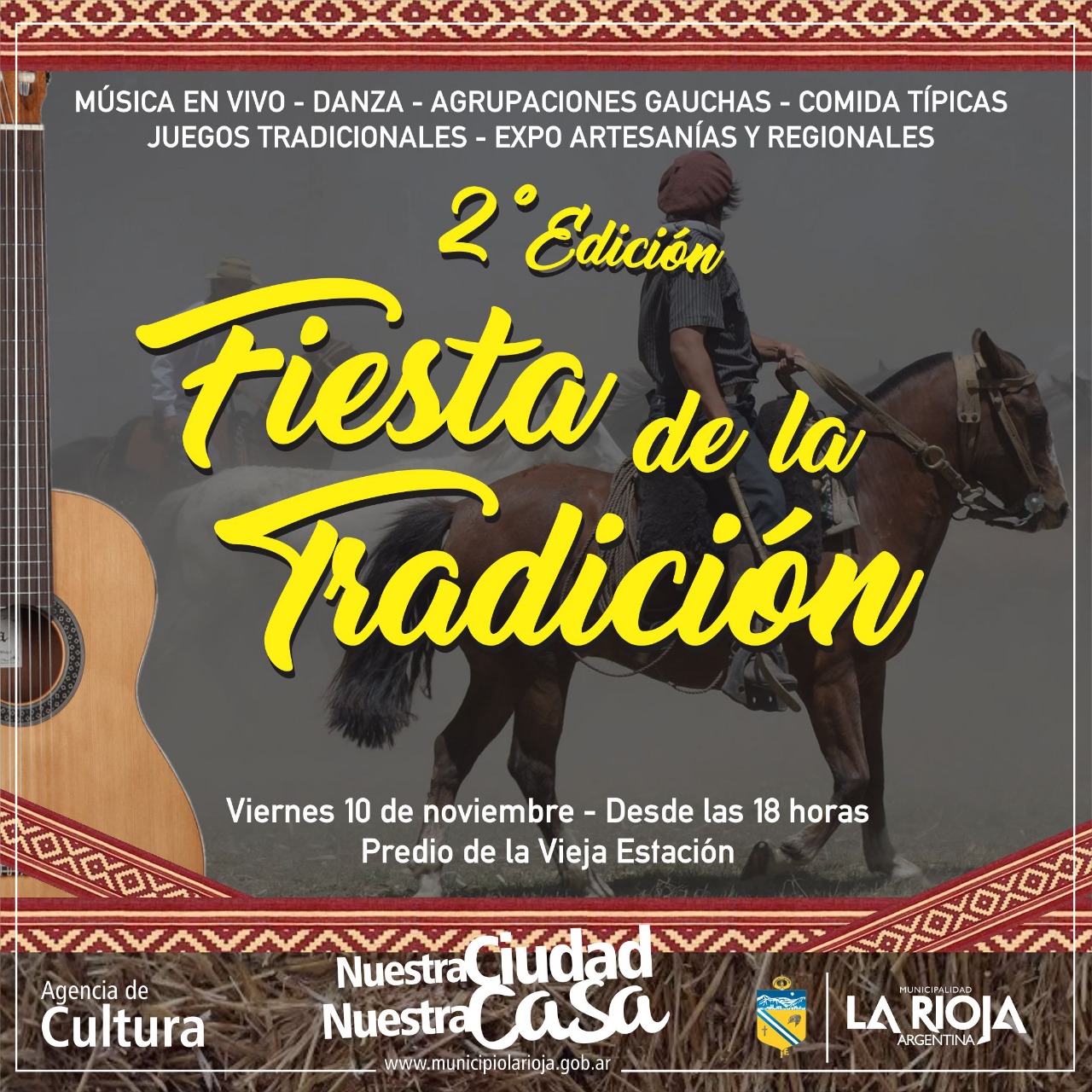 La Municipalidad de la Rioja a través de la Agencia de Cultura, llevará a cabo la segunda edición de la fiesta de la tradición, el viernes 10 de noviembre en el Galpón de la Vieja Estación a las 18 horas con entrada libre y gratuita, y el objetivo de revalorizar la tradición de nuestra provincia..