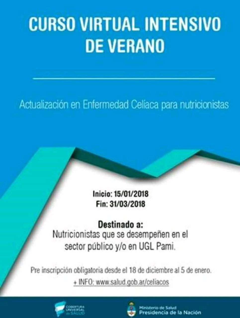 Con el propósito de seguir creando espacios para la formación del personal, el Ministerio de Salud dictará un curso de verano sobre actualización en la enfermedad celiaca. El mismo dará inicio a el lunes 15 de enero y se extenderá hasta el sábado 31 de marzo, del año 2018..