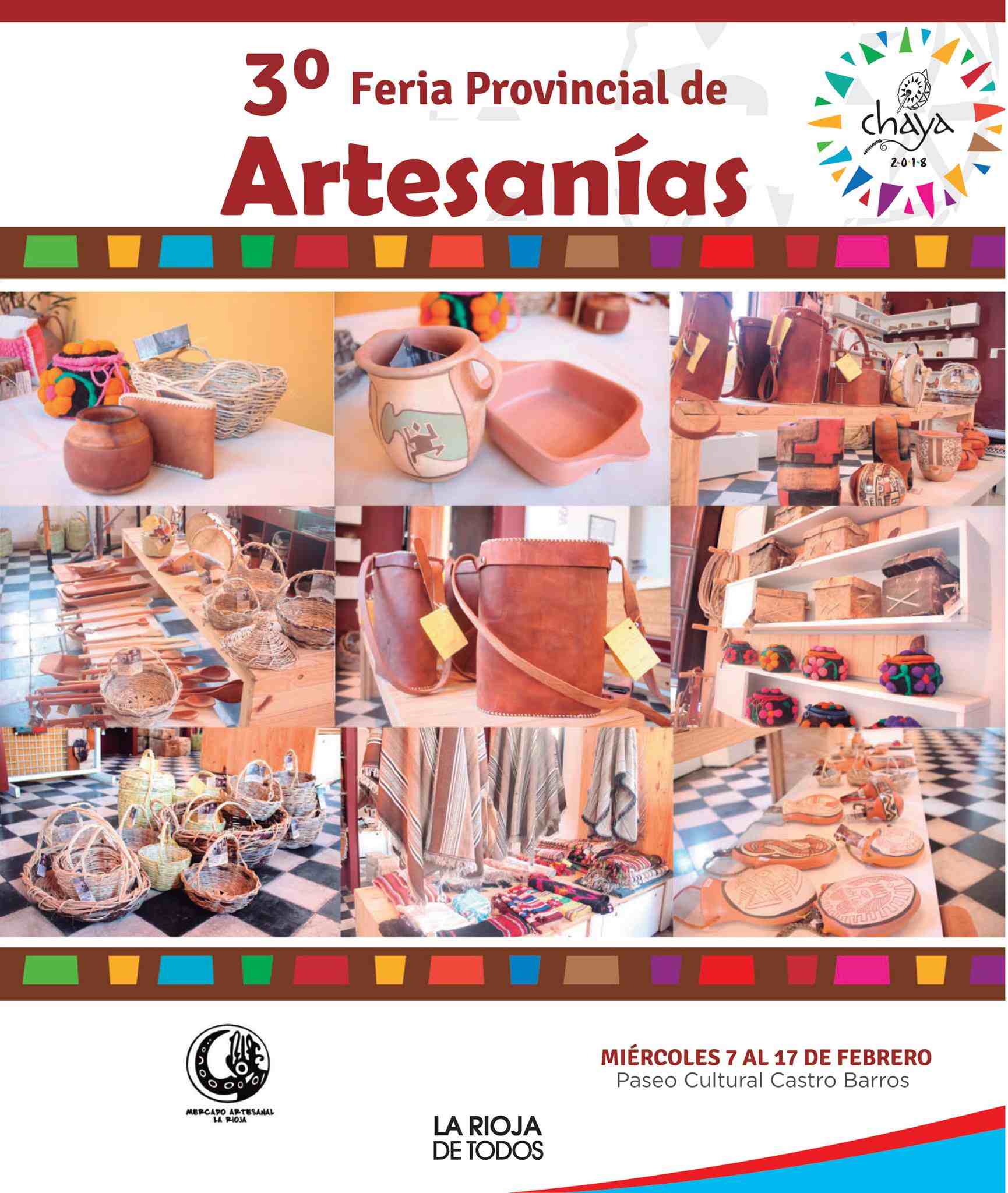 Organizada por la Secretaría de Cultura en el marco del programa de actividades en el Mes de la Chaya, la Tercera Edición de la Feria Provincial de Artesanías se desarrollará entre el 7 y el 17 de febrero en el Paseo Cultural Castro Barros.