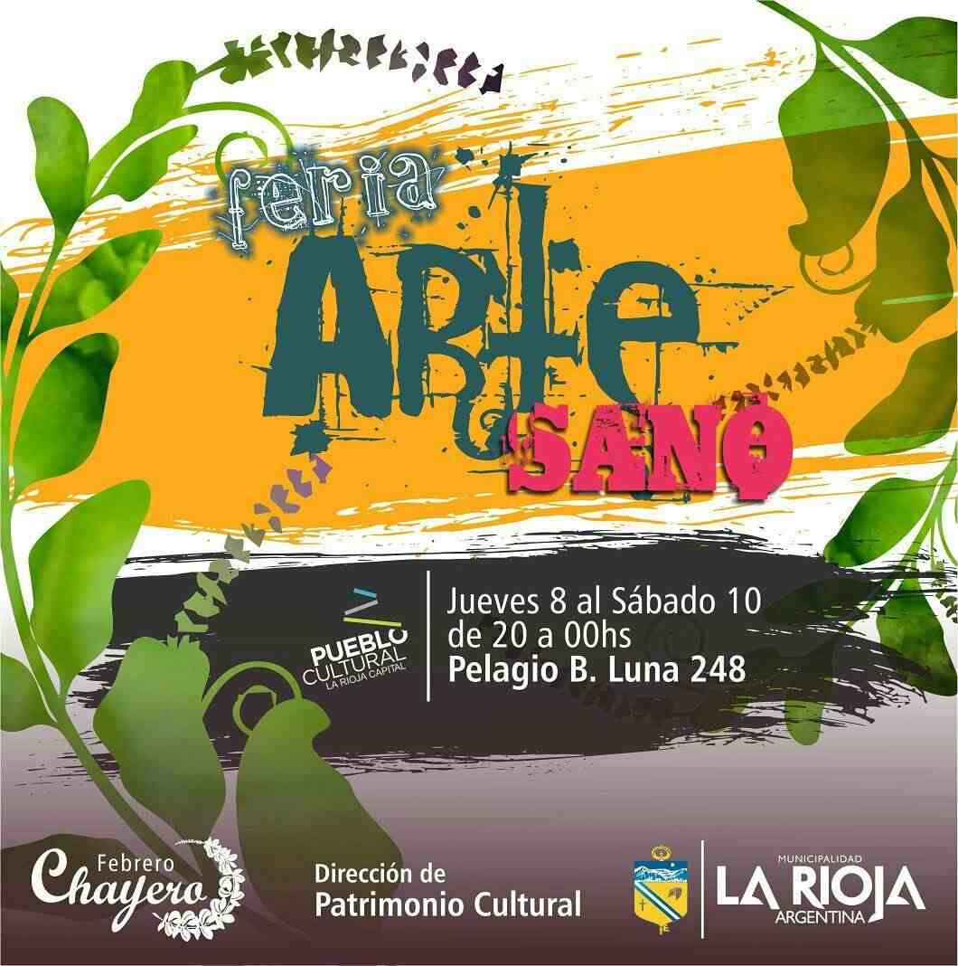 Como parte de las actividades enmarcadas en el Febrero Chayero el evento Arte Sano se desarrollará en el horario de las 20 hasta la medianoche los días mencionados.