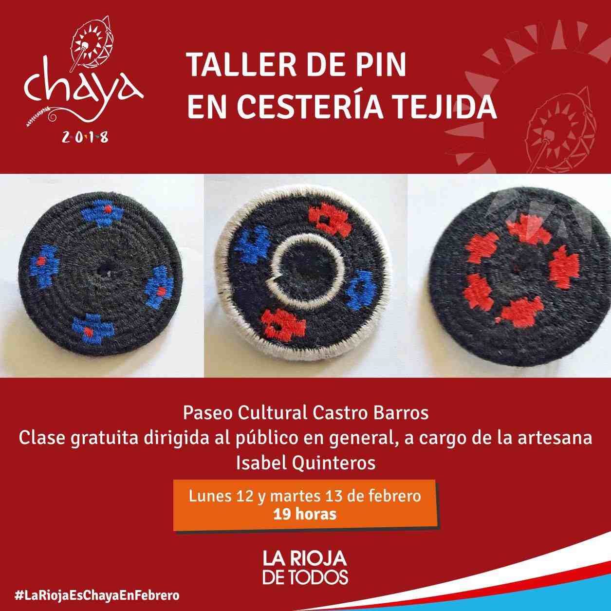 En una actividad libre y gratuita, este lunes 12 y martes 13 se desarrollará el Taller de Pin en Cestería Tejida en el Paseo Cultural Castro Barros..