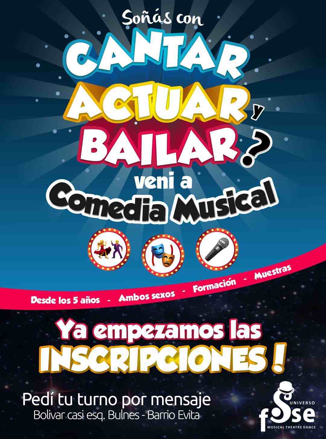 Ubicada en Bolivar casi esquina Bulnes, en el barrio Evita, la Academia Universo Fosse bajo la dirección de Marcos Mercado Arias, abrió sus inscripciones para las disciplinas que comprenden la Comedia Musical..