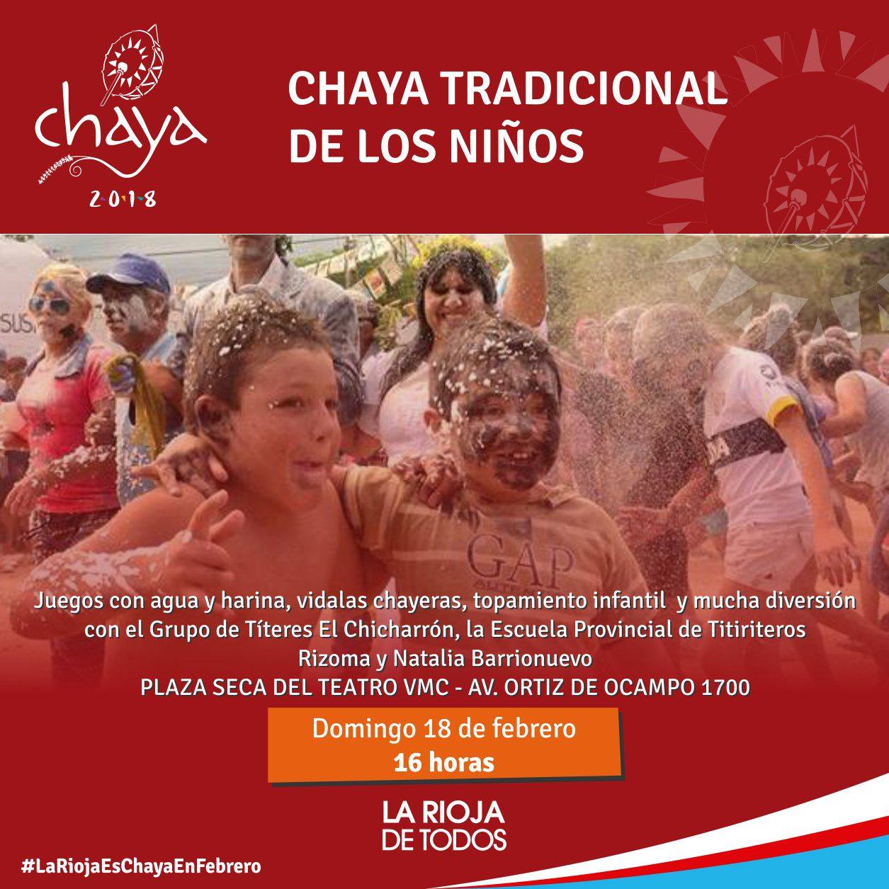 Organizada por la Secretaría de Cultura tendrá lugar el domingo 18 de febrero la Tradicional Chaya de los Niños. Será en la Plaza Seca al ingreso del Teatro Víctor María Cáceres desde las 16 horas..