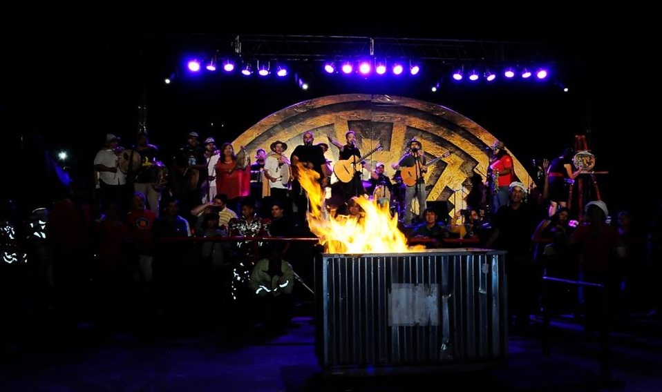 Iniciando con una marcha de vidaleros y acompañados permanentemente por el público que asistió, la delegación riojana mostró la tradición de su fiesta, para luego subir al escenario Atahualpa Yupanqui y cantar junto a la impactante quema del pujllay.