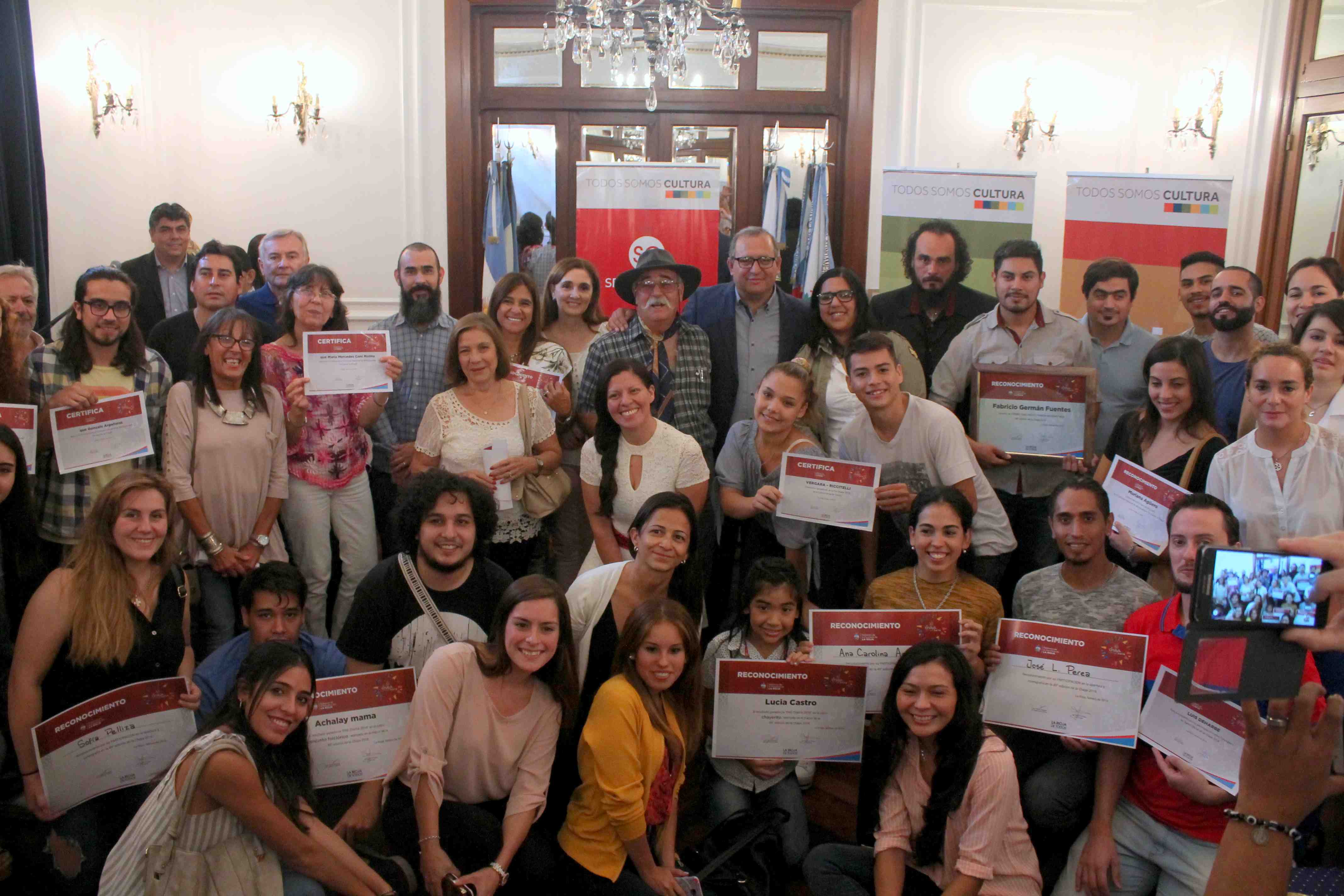 Encabezada por el secretario de Cultura, Víctor Robledo junto al subsecretario de Artes y gestión Cultural, Nicolás Halkett y la subsecretaria de Música y Danza, Patricia Herrera la entrega convocó a decenas de artistas como cantantes, músicos, bailarines, escritores, fotógrafos, actores y hacedores culturales que se hicieron presentes para recibir los galardones.