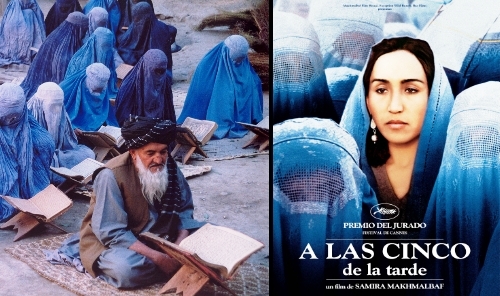 "A las cinco de la tarde" es una emocionante y bella historia. A partir del derrotero de dos mujeres afganas y el camino que ellas recorren, la directora consigue trasmitir la dura situación de las mujeres en Afganistan y, por extensión, a lo largo de la historia de la humanidad. La película de la joven directora iraní Samira Makhmalbaf, pinta un inteligente y emotivo fresco y nos invita a escrutar con ojos atentos los avances y retrocesos de esa lucha que aún deben seguir librando las mujeres. Filmada íntegramente en la devastada ciudad de Kabul y sus alrededores, "A las cinco de la tarde" toma prestados el tono elegíaco y los versos del español Federico Garcia Lorca, como el lei-motiv que atraviesa el film desde el inicio hasta el final del relato.