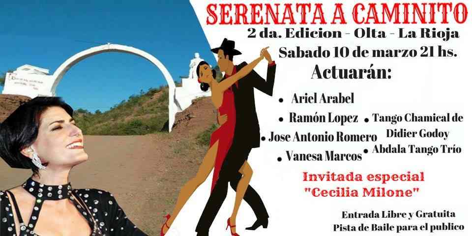 El sábado 10 de marzo se realizará la segunda edición de Serenata a Caminito. El mismo se concretará en Olta, en el escenario natural que inspirara al autor del tango a escribir la canción mundialmente conocida. El evento iniciará a las 21 y contará con la actuación especial de Cecilia Milone..