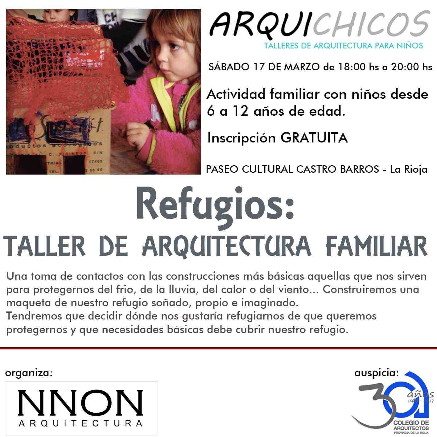 El próximo 17 de marzo se realizará una nueva edición denominada Refugios: Taller de Arquitectura Familiar en las instalaciones del Paseo Cultural y la inscripción es totalmente gratuita, los cupos son limitados..