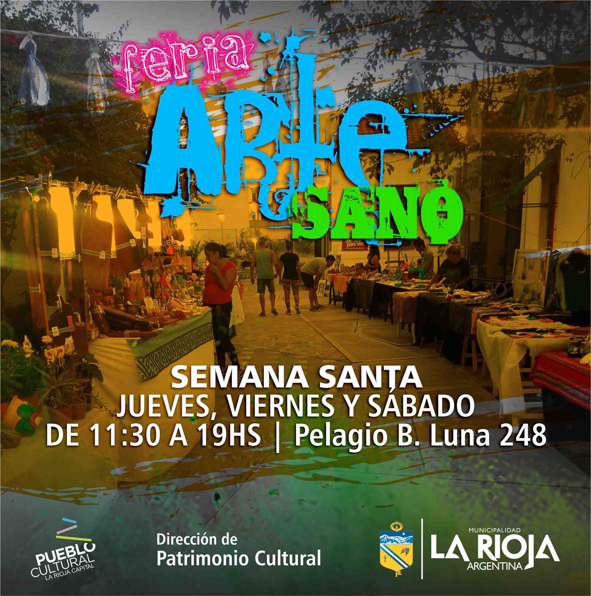 Hoy viernes y mañana sábado tendrá lugar una nueva edición de la Feria Arte Sano Edición Semana Santa. Como de costumbre será en el Pueblo Cultura, en Pelagio B. Luna 248 y en esta ocasión será en horario corrido de 11:30 a 19 horas..