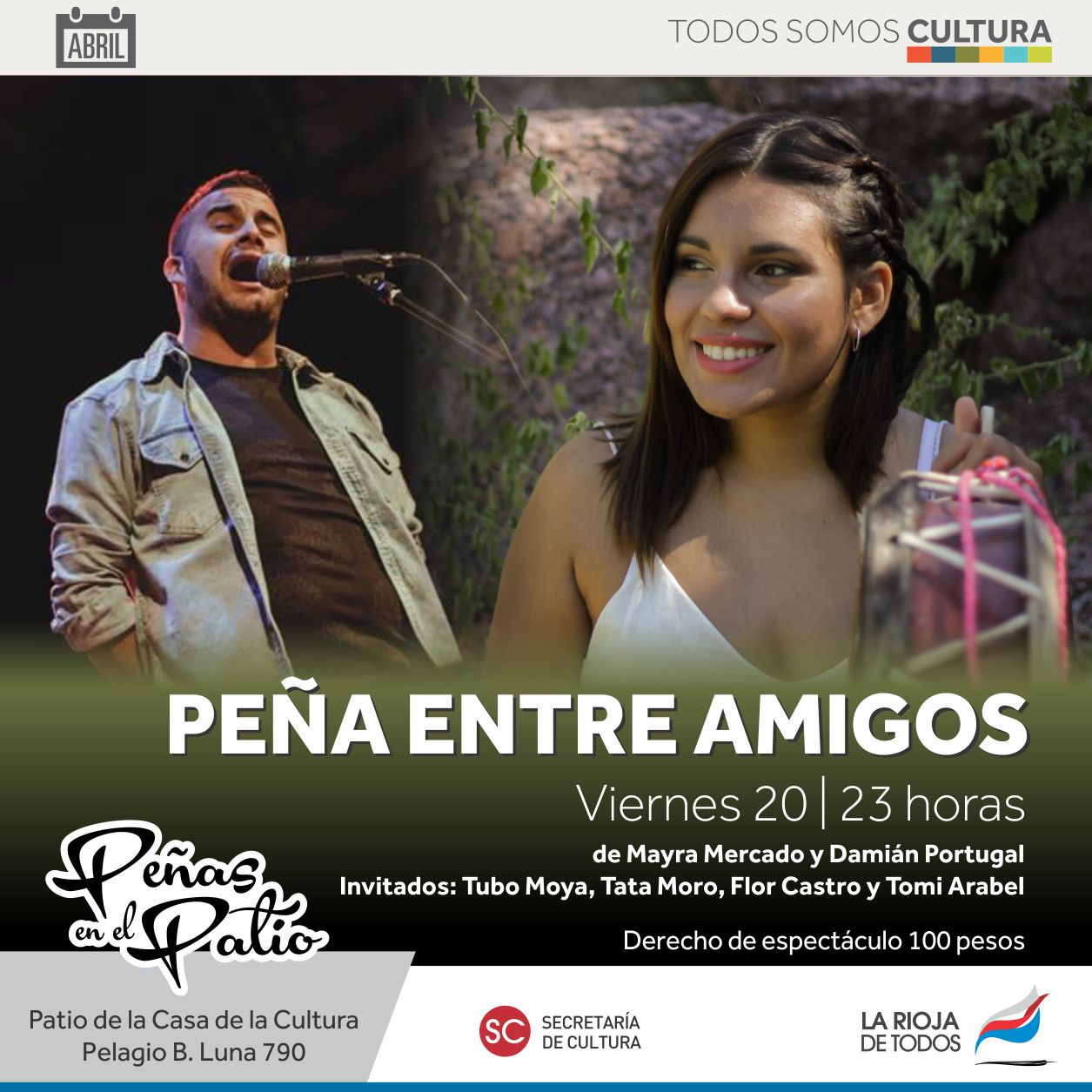 Como todos los fines de semana, Peñas en Patio abre sus puertas en Pelagio B. Luna 790 a partir de las 23 horas. Esta vez con dos importantes propuestas del folklore: Entre amigos (Maira Mercado y Damián Portugal) y Famatrío..