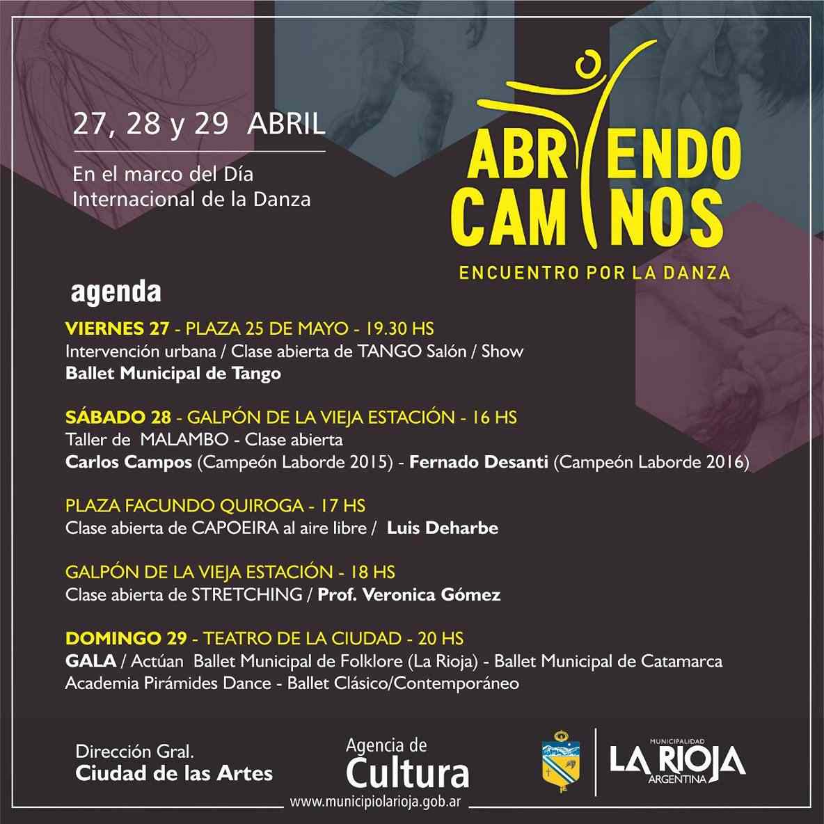 Los días 27, 28 y 29 de abril próximos se realizará el Primer Encuentro de Danza denominado Abriendo Caminos. Habrá distintas actividades en diferentes espacios.
