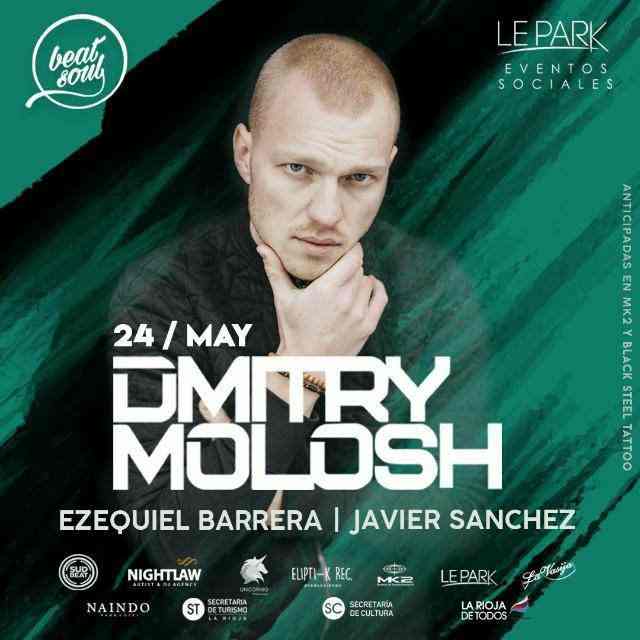 Organizado por Elipti-k Récords, Lepark eventos y Unicornio Producciones el 24 de mayo será la primera fecha del año de Beat Soul con la visita de Dmitry Molosh, desde Bielorrusia. En el warm up estarán los residentes de Javier Sanchez & Ezequiel Barrera..