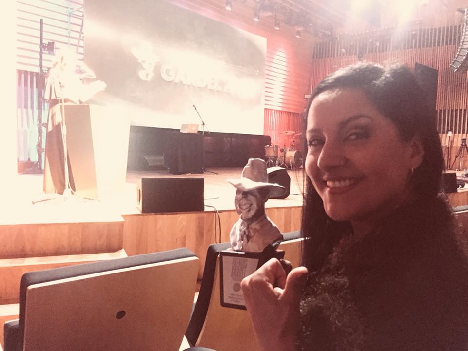 La artista riojana estaba nominada por su última producción discográfica junto a Lorena Astudillo y Florencia Paz, a quienes invitó a subir al escenario para compartir la premiación.