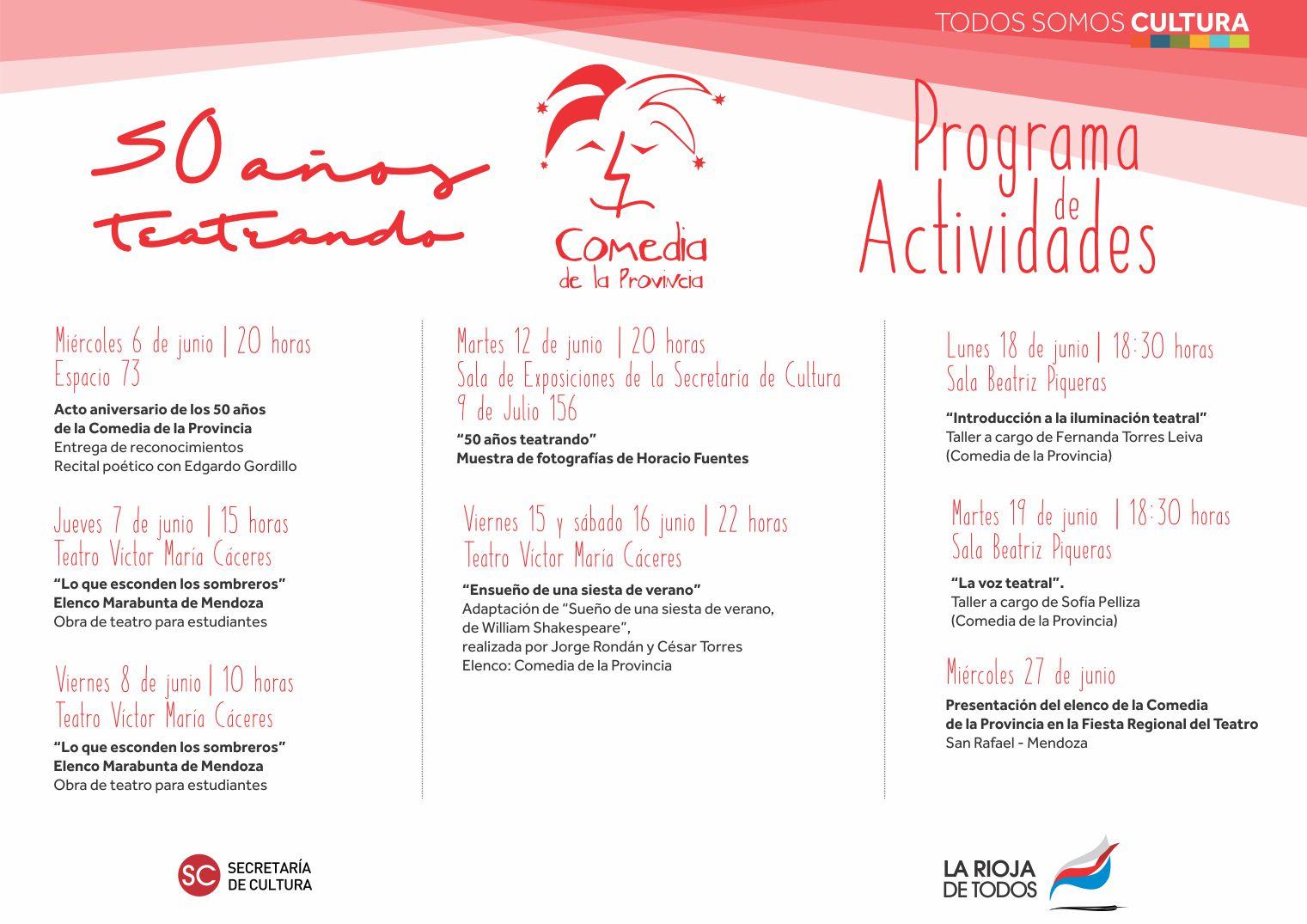 Entre otras actividades programadas los festejos concluirán el miércoles 27 de junio en la Fiesta Regional del Teatro en San Rafael, Mendoza.