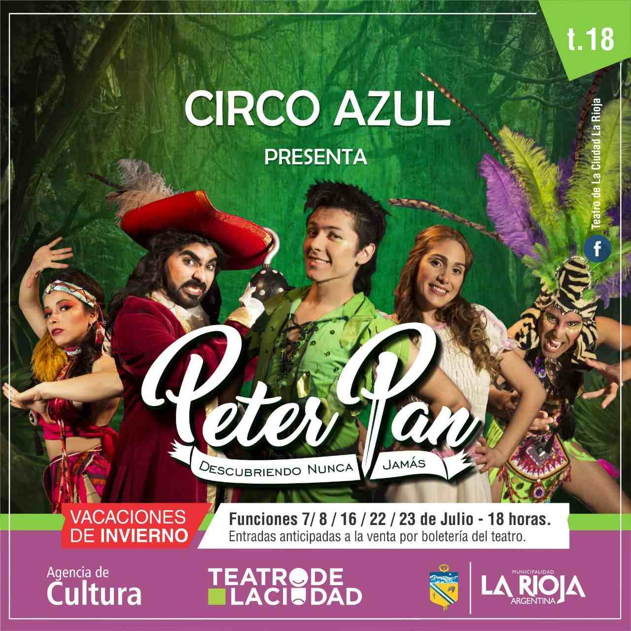 Todos los sábados y domingos de julio desde las 18 horas el Teatro de la Ciudad propone el espectáculo "Peter Pan" a cargo del Circo Azul..