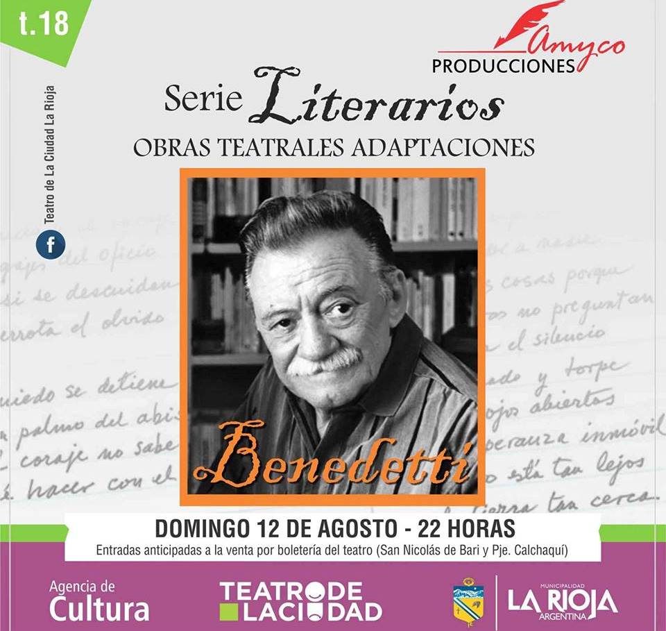 Este domingo 12 de agosto, a las 22, en el Teatro de la Ciudad presenta la obra Benedetti, la primera entrega de la Serie Literarios, en la que 13 jóvenes artistas, que están incursionando en el arte dramático, llevarán a escena las letras de cuentos y poesías del escritor uruguayo..