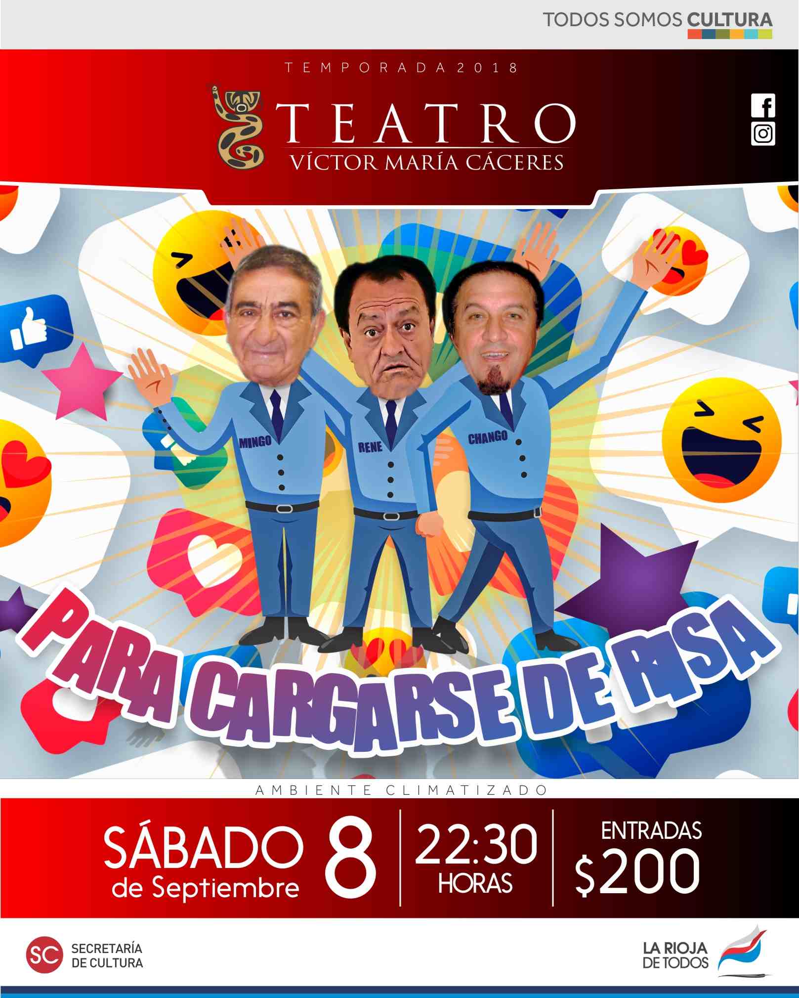 Tres grandes del humor riojano se presentan con un show único que quedará para la historia, donde abordarán temas actuales como redes sociales, nuevas tecnologías y los clásicos de siempre: la suegra, los borrachos, el matrimonio, entre otros.