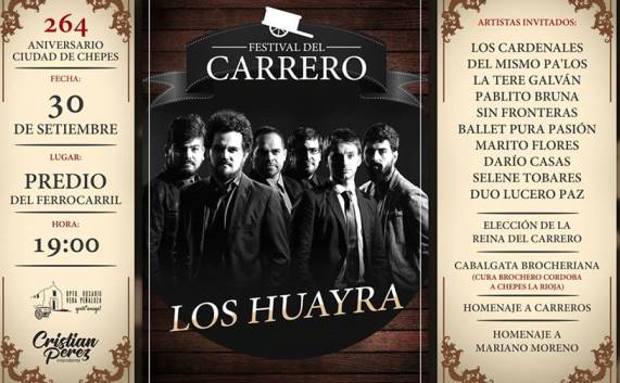 El domingo 30 de septiembre, en la ciudad de Chepes se realizará el Festival del Carrero 2018, en el predio del Ferrocarril, con motivo de cumplirse un nuevo aniversario de dicha ciudad. La fiesta comenzará a las 19, y la entrada será libre y gratuita.