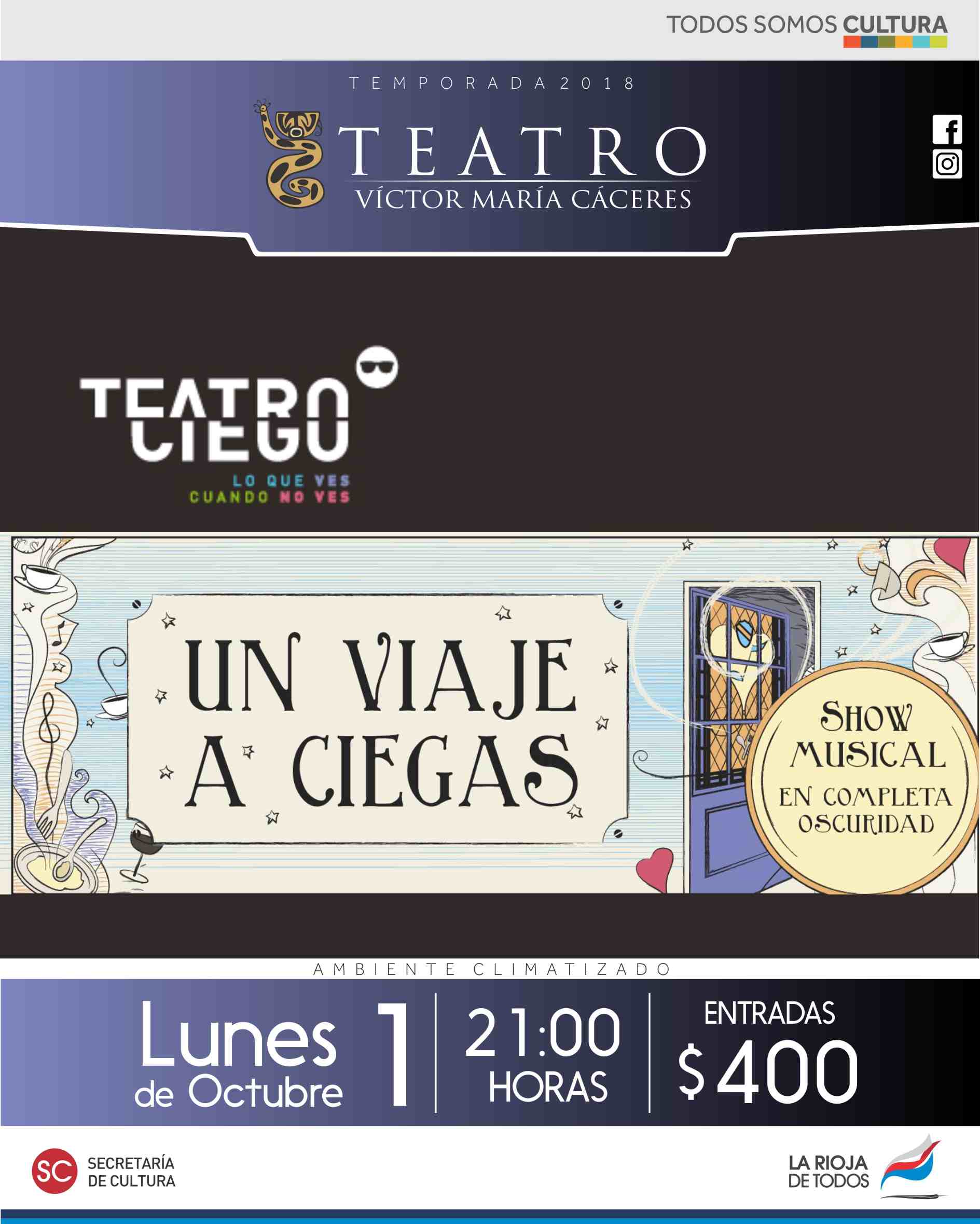 El lunes 1º de octubre, a las 21 horas, la Compañía Teatro Ciego llega al Víctor María Cáceres con una propuesta diferente para descubrir el mundo de los aromas, sensaciones táctiles y sonidos en un viaje a ciegas a través de los sentidos, en la más absoluta oscuridad..
