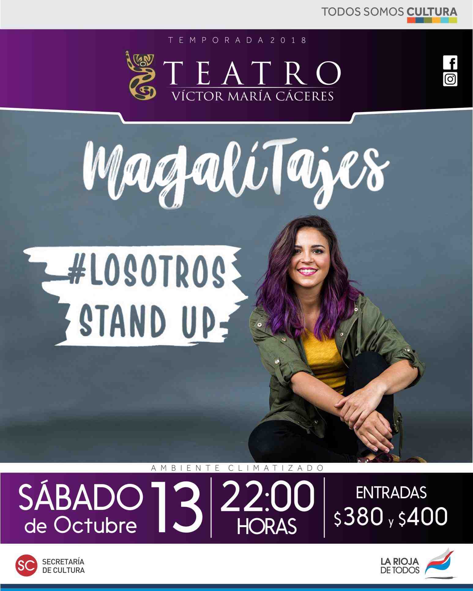 Magalí Tajes presenta su primer unipersonal Los otros, stand up un show íntimo, profundo, y conmovedor, con su mejor versión en un escenario y en su afán por la aprobación de los otros. Será en el Víctor María Cáceres el sábado 13 de octubre, a las 22 horas, y las entradas cuestan 380 y 400 pesos..
