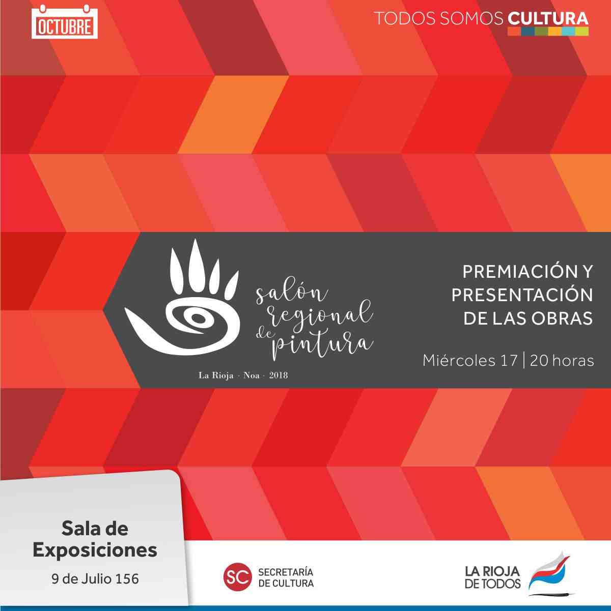 La Secretaría de Cultura realizará este miércoles 17 de octubre a las 20 horas el acto de premiación y apertura de la muestra del Salón Regional de Pintura La Rioja - NOA 2018..