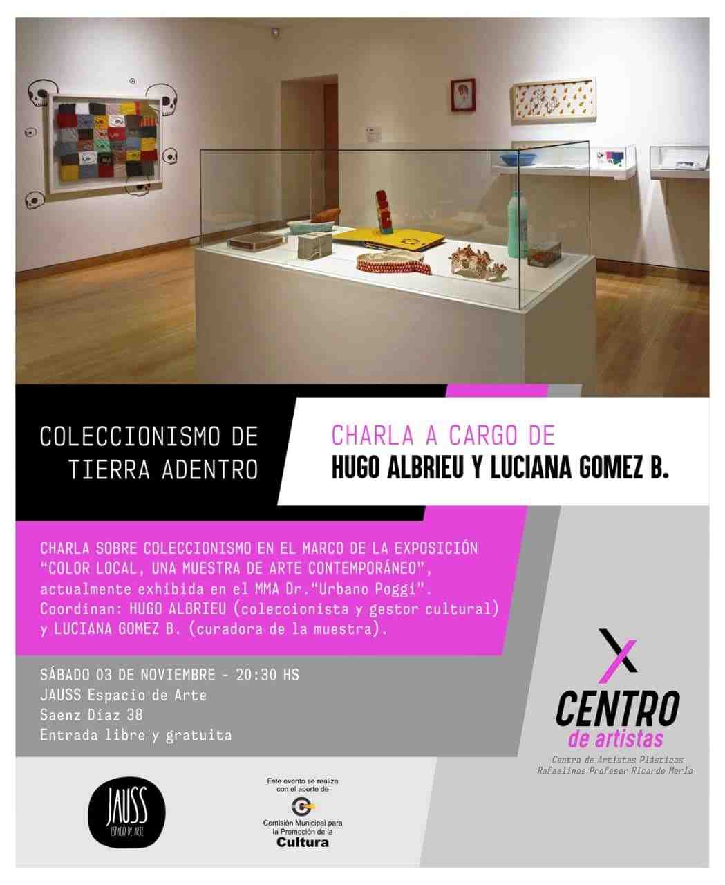 Paralelamente el sábado 3 de noviembre Hugo Albrieu y Luciana Gómez tendrán a su cargo la charla “Coleccionismo de Tierra Adentro” en el marco de la exposición. Será desde las 2’:30 horas en Gauss Espacio de Arte, Sáenz Díaz 38 con entrada libre y gratuita.