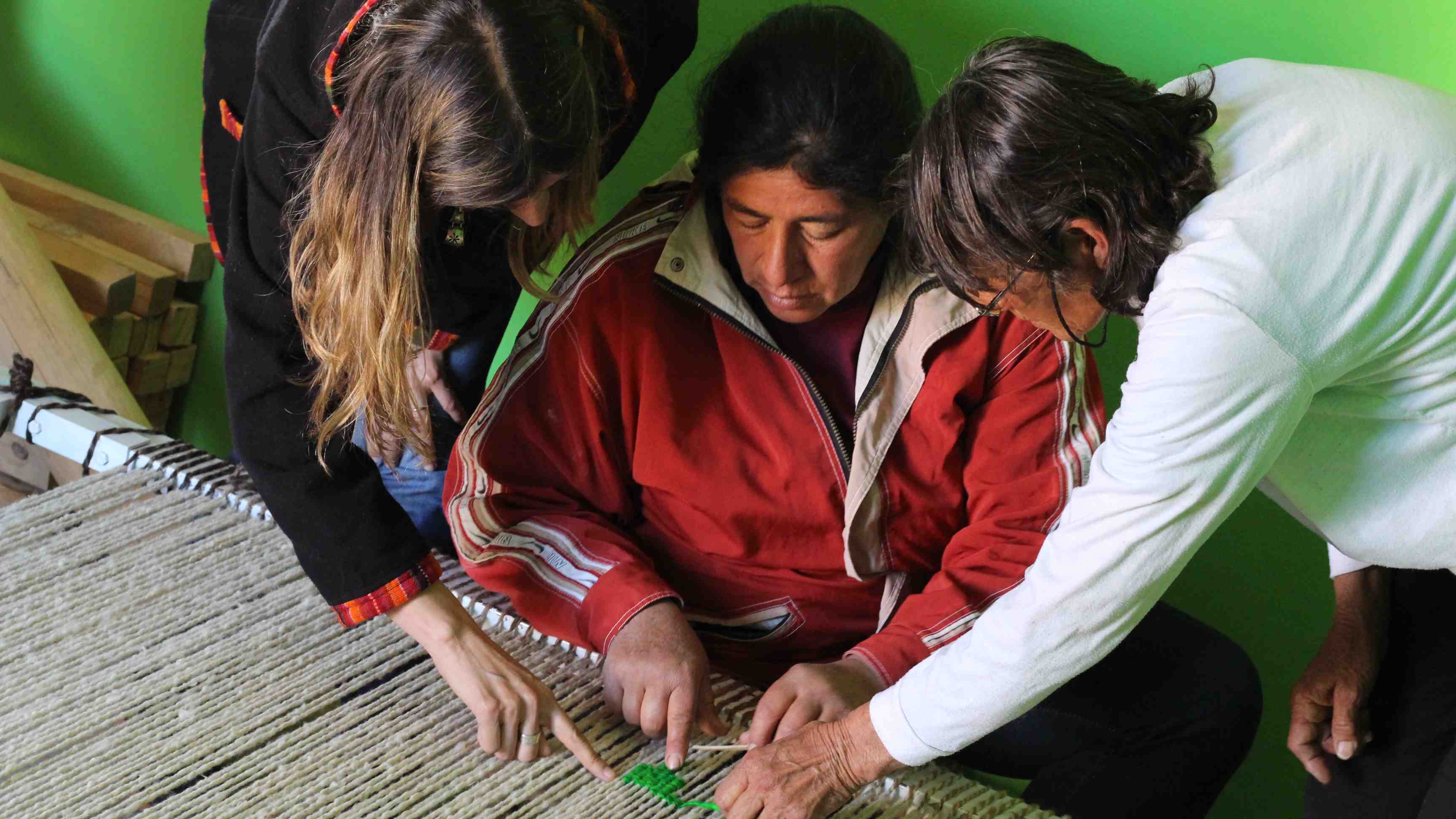 Las maestras artesanas Dominga Isabel Juárez y Paula de Vega son las encargadas de transmitir su valioso conocimiento. La idea es recuperar, mediante la enseñanza del oficio, la tradición del tejido en bastidor.