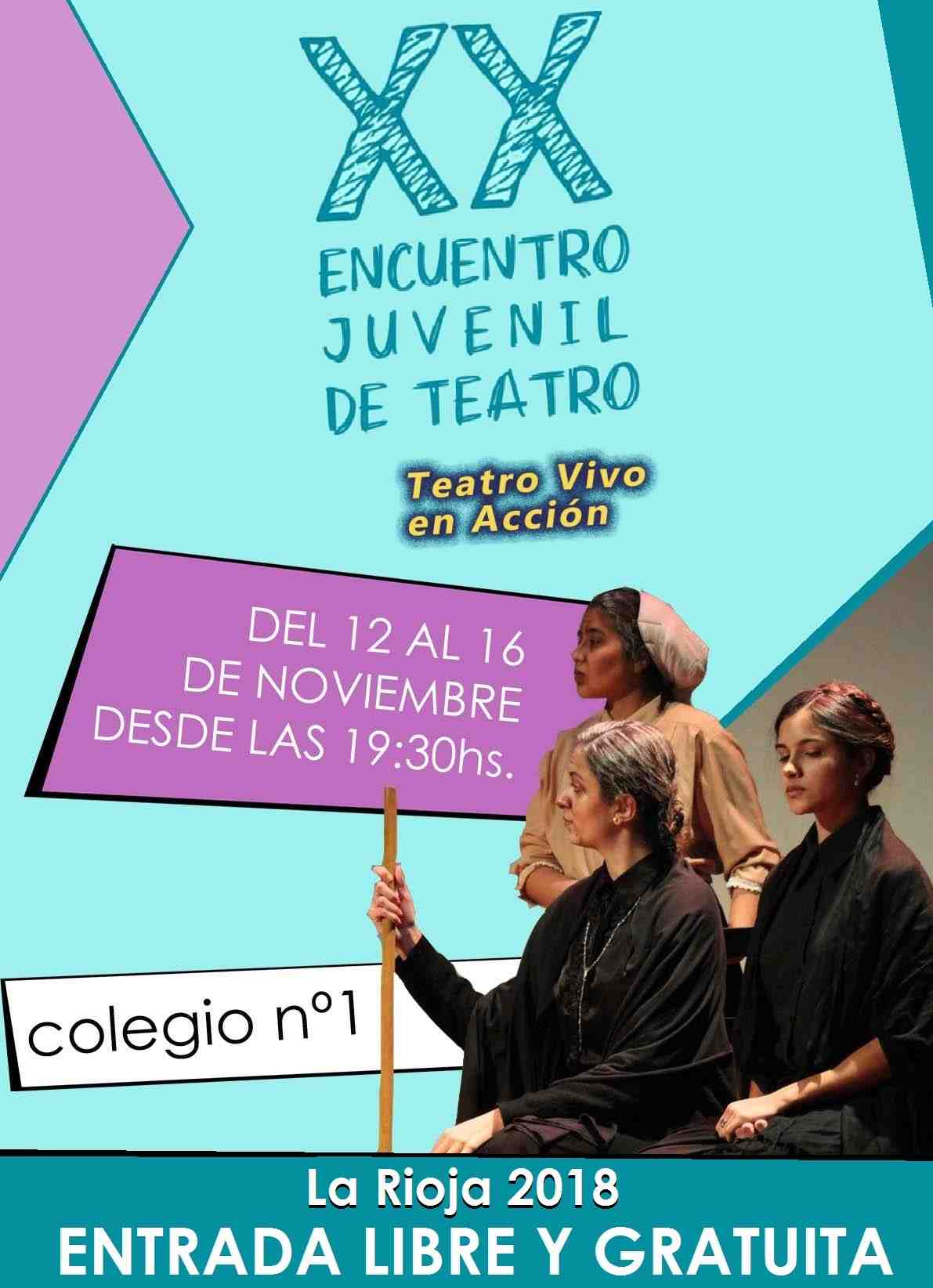 En el marco de la edición número 20 que se realiza de forma ininterrumpida del Encuentro Juvenil de Teatro en la Rioja, este año el evento tendrá lugar entre el 12 y el 16 de noviembre en el Colegio N° 1..