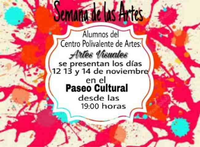 Nuevamente y como cada año, el departamento de Artes Visuales del Centro Polivalente de Arte "Estanislao Guzmán Loza" expone las producciones de sus alumnos. En esta ocasión será entre los días 12 al 14 de noviembre en la explanada del Paseo cultural, desde las 19 horas. .