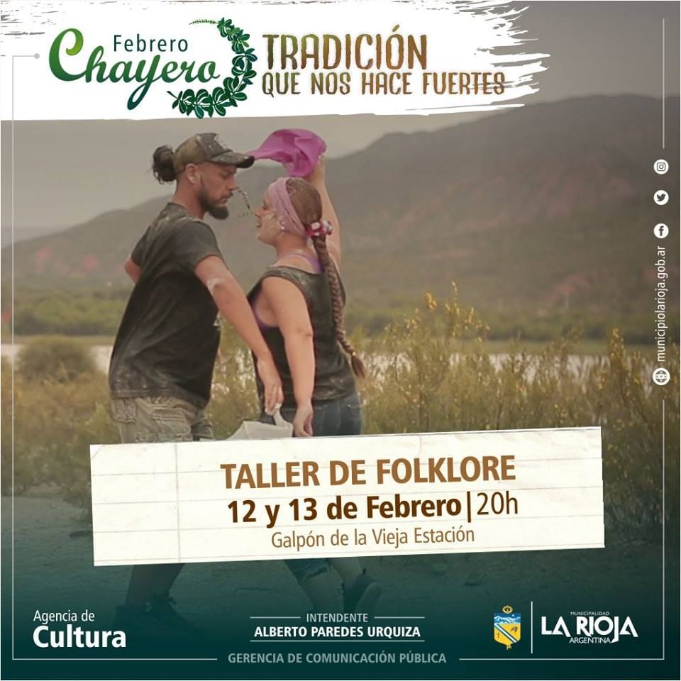 La Agencia Municipal de Cultura invita a todos los interesados a participar del Taller de Folklore, que será dictado por los prestigiosos bailarines riojanos Popy Villafañe y Juan Luis Miguel..