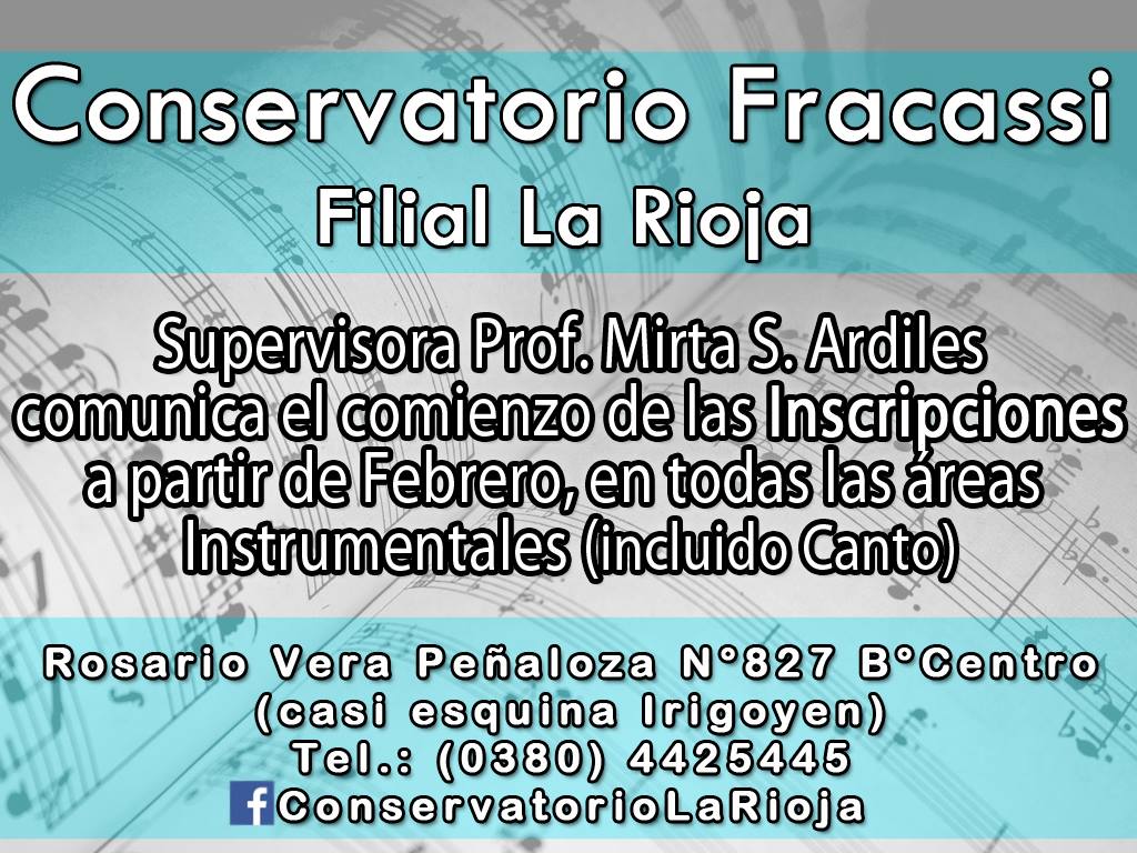 Conservatorio Fracassi abrió sus inscripciones para cursos acelerados para mayores de 18 años, Canto, Piano, Órgano, Guitarra, Violín, Armonía, Audioperceptiva, Teoría, Solfeo, Formación de Orquestas Estilo Sinfónico, Cursos para ingreso de Universidades..