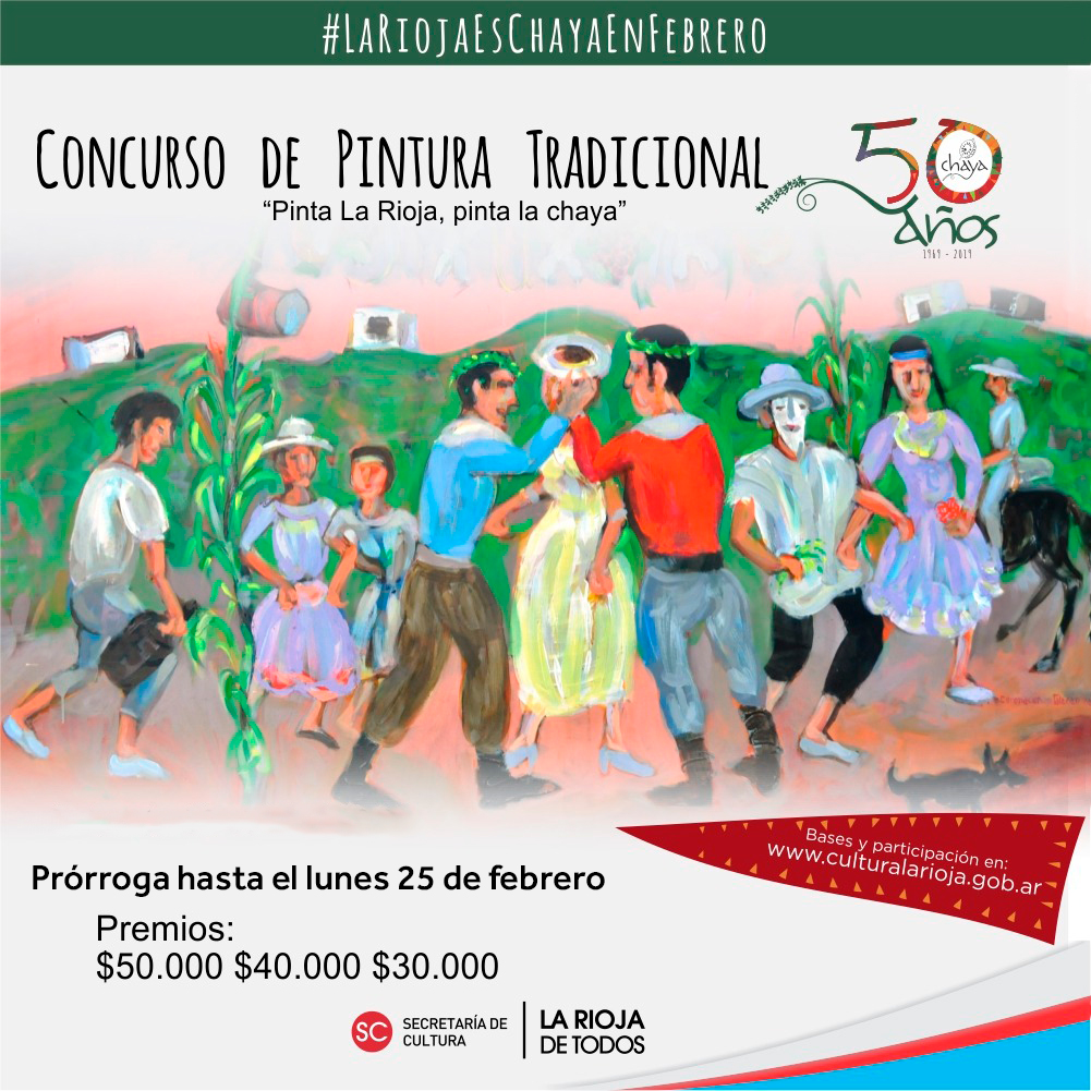La Secretaría de Cultura informa que se extendió el plazo de recepción de obras del concurso "Pinta La Rioja, Pinta La Chaya", hasta el lunes 25 de febrero..