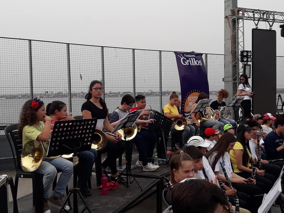 El director de la orquesta infanto- juvenil, Roberto Maldonado, estuvo acompañado por 55 integrantes y antes del festival brindaron un concierto compartido con una Banda de Italia en una escuela de Puerto Iguazú.
