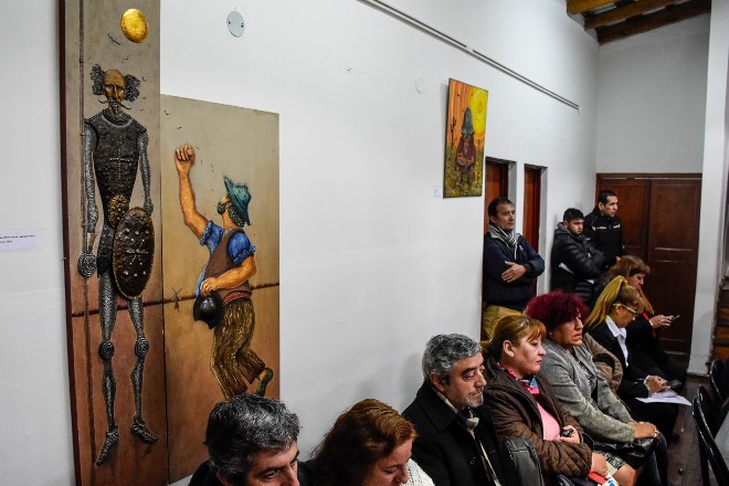 En la sesión del miércoles último, el recinto Santo Tomás Moro estuvo adornado por el arte pictórico de Elvidio Chávez, quien nació en San Juan, pero se radicó en La Rioja y tiene su atelier llamado "El viejo pintor".