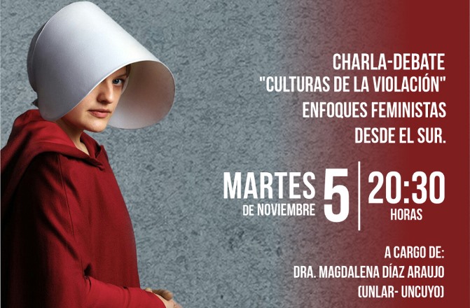El espacio Sur Cultura invita a través de la Dirección de Innovación Cultural, de la Secretaría de Cultura, a la primera actividad de la Comisión de Género y Diversidad. Se trata de la charla debate: "Culturas de la violación: enfoques feministas del sur" a cargo de la Dr. Magdalena Díaz Araujo (UNCUYO- UNLaR). Será en el Bar del Teatro Víctor María Cáceres, el día martes 5 de noviembre a las 20:30 horas, con entrada libre y gratuita.