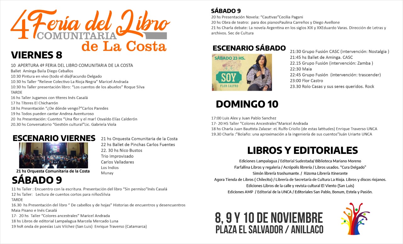 Los días 8, 9 y 10 de noviembre se realizará en Anillaco la cuarta edición de la Feria del Libro Comunitaria de La Costa.