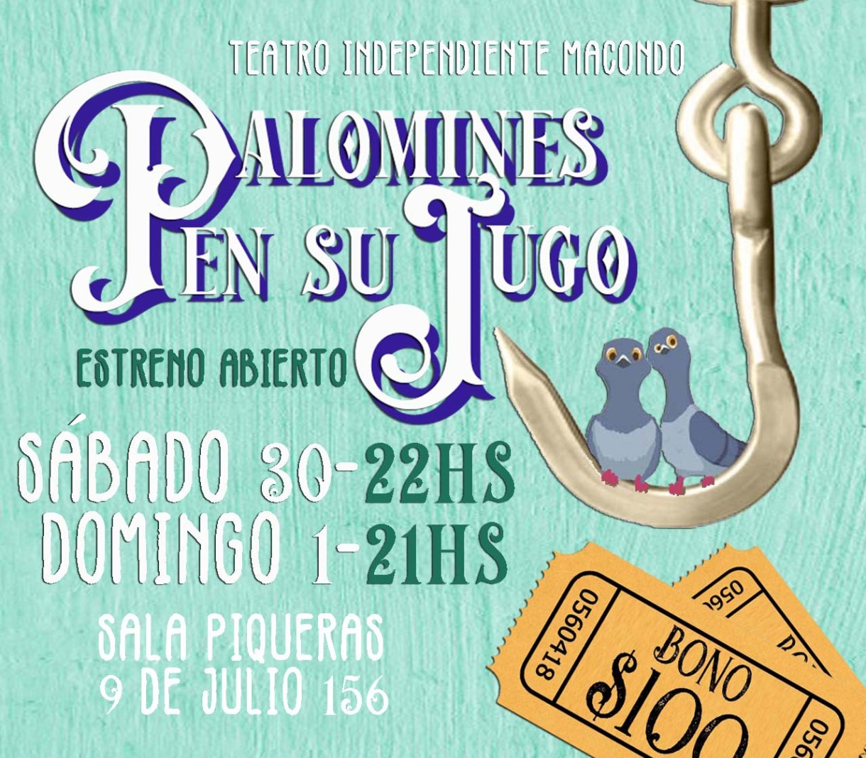 El grupo teatral Macondo, realizará el estreno abierto de la obra Palomines en su jugo, este sábado 30, en adhesión al Día del Teatro Independiente. La función tendrá lugar en la Sala Beatriz Piqueras de la Secretaría de Cultura en calle 9 de julio 156, a las 22 horas. Se repondrá el domingo a las 21, en la misma sala y se cobrará un bono contribución de 100 pesos.