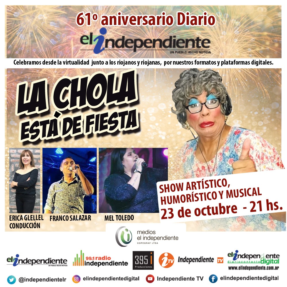 Con el show virtual La Chola está de fiesta, en el mes aniversario de El Independiente, continúan los festejos este viernes a las 21 por Radio Independiente 99.1 y las redes sociales de Medios El Independiente.