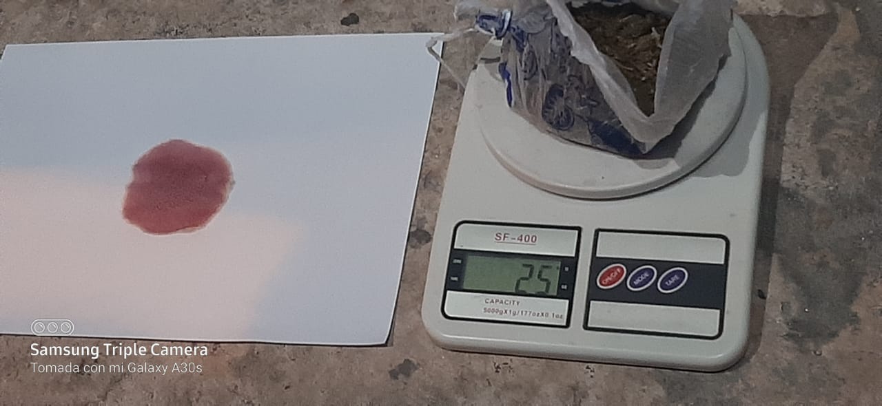 Al momento de ser demorados, se observó que llevaban una bolsa con aparente sustancia prohibida. Por tal motivo, tomó participación el Personal de Lucha Contra el Narcotráfico, quienes realizaron la prueba de campo, arrojando resultado positivo, tratándose de Marihuana.