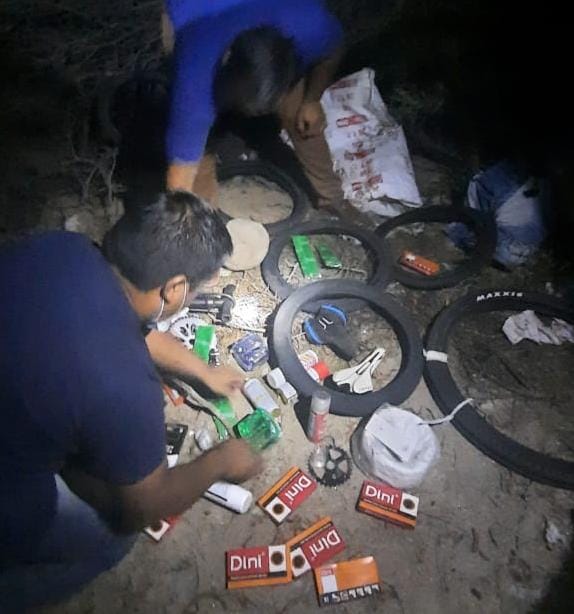 Al ingresar al lugar, personas desconocidas habían sustraído varios elementos los elementos: 40 cadenas para bicicletas, inflador carca GIGO, color negro, pedales marcas Venzo y comunes de color verde, negro, amarillo, para rodado 20, cubiertas marca Chauyame para rodado 20 y INNVONA-PRO para rodado 29, posee letras de color verde, entre 8 y 10 Cambio marca Alivio de montabike, con 9 velocidades de material aluminio, Mazas, Cadenas de Ruta y montabike, Piñones de montabike y de Ruta de 8,9 y 10 coronas, fusibles para gancho, como 20 frascos que contenían Repuestos varios, Manubrio para rodado 20 marca VENZO, LOGAN, ZARD, VANS de color negro, celestes, Palancas para rodado 20 y montabike, cubiertas marca MAXI para rodado 29.