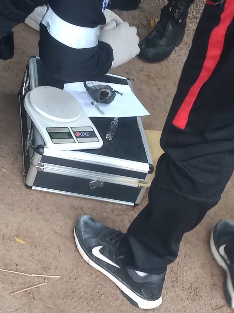 Al momento de la demora contenía, entre sus prendas de vestir, una arma blanca (tipo cuchillo de carnicero) y envoltorios en nylon de sustancia vegetal, por lo que se comisionó al lugar personal de la Dirección Gral. de Lucha Contra el Narcotráfico y Trata de Personas, quienes realizan trabajo de campo en el lugar, arrojando como resultado positivo para marihuana.