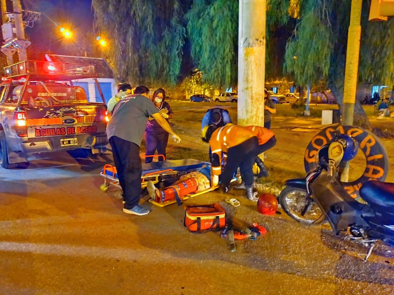 Siendo la hora 22.05, Bomberos Águilas de Acero, se dirigieron por Avenida Malvinas Argentina, esquina Chacha Peñaloza, a un accidente de tránsito.