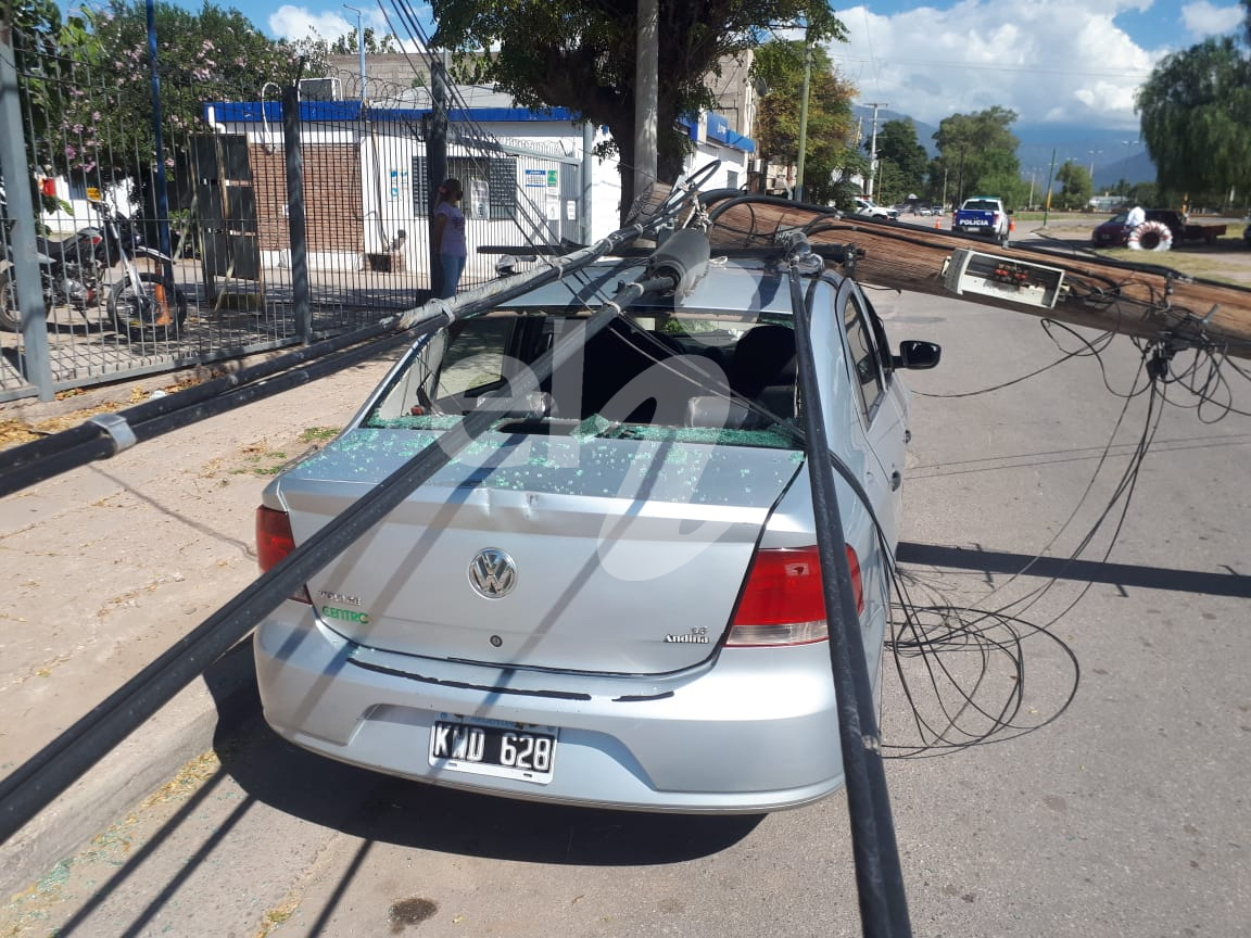 Esto provocó que desafortunadamente, “el poste cayera arriba del auto de mi propiedad provocando daños en la luneta, techo, y el baúl”.