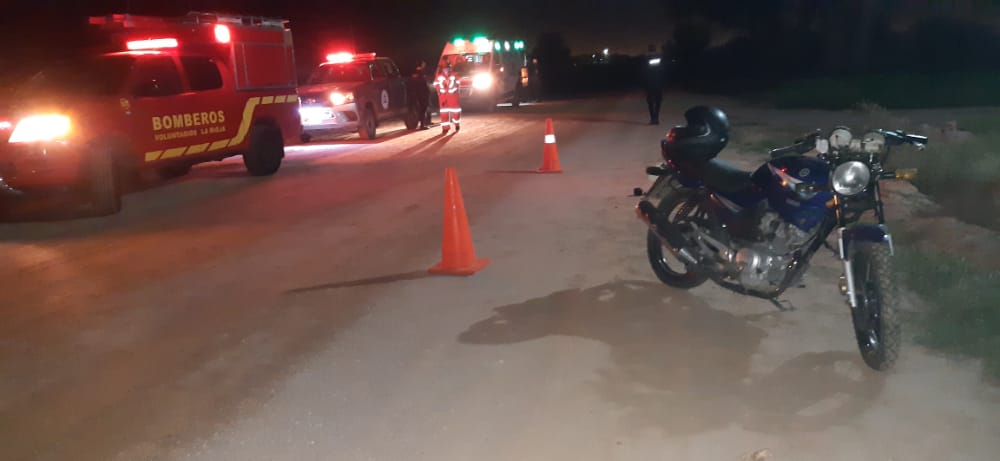 El siniestro sucedió a las 23:04hs por continuación de avenida San Nicolás de Bari Este, a metros de calle Proyectada, pasando predio de Rioja Vial. Una motocicleta Yamaha YBR, 125cc, azul, al mando de Ochoa Maico Raúl, 30 años, circulaba por avenida San Nicolás de Bari y por motivos que se desconocen pierde el control y cae.